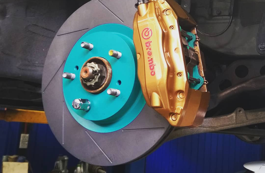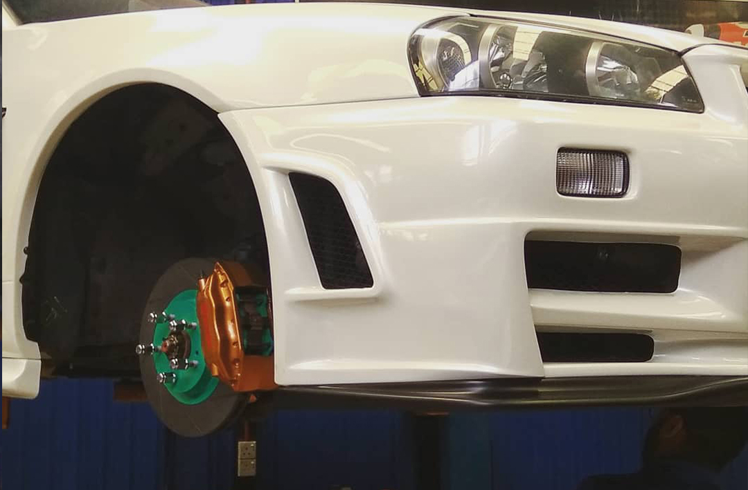 BRAKE KITS Project Mu Rotors & Pads Project Mu Rotors & Street Sports padsProject Mu Rotors & Street Sports pads on an R34 GTR